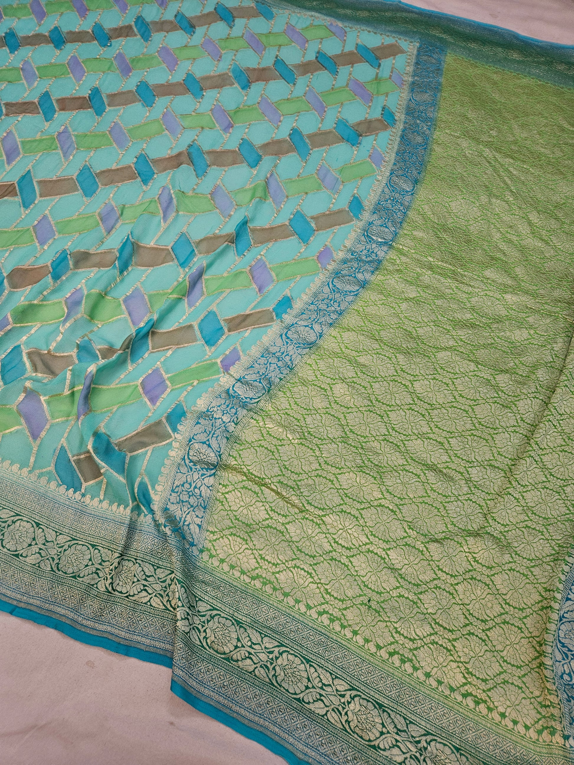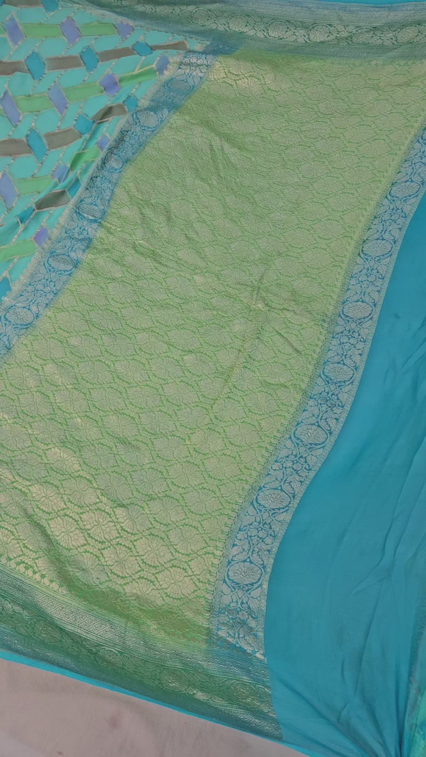 pure georgette silk banarasi handbrush work woven tested zari saree