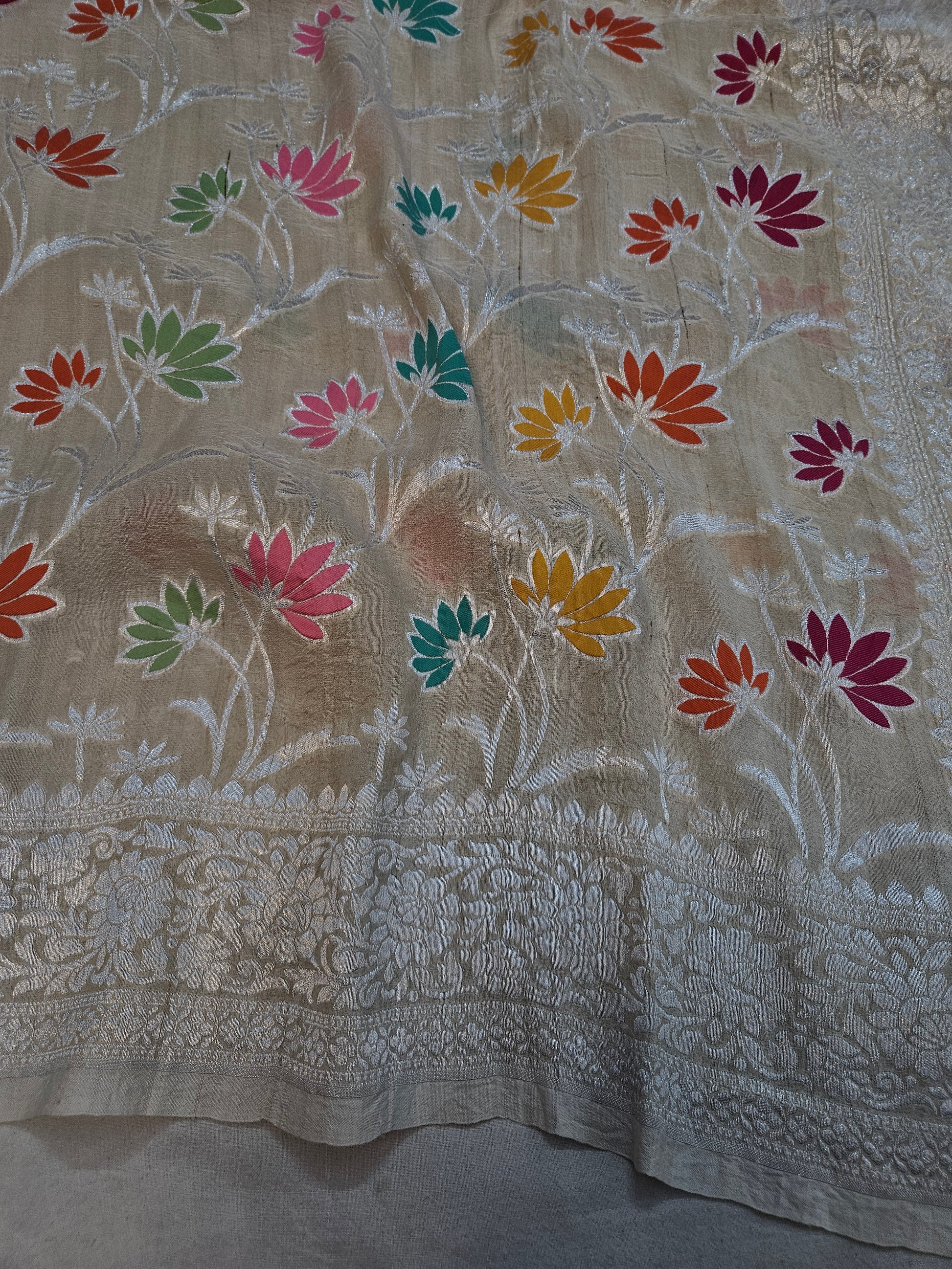 Note: We make every effort to photograph the saree so as to capture their natural colour. However, due to factors not in our control, the colour that you see on your phone/screen may vary from the real colour of the fabric. Minor variation in colour is unavoidable.