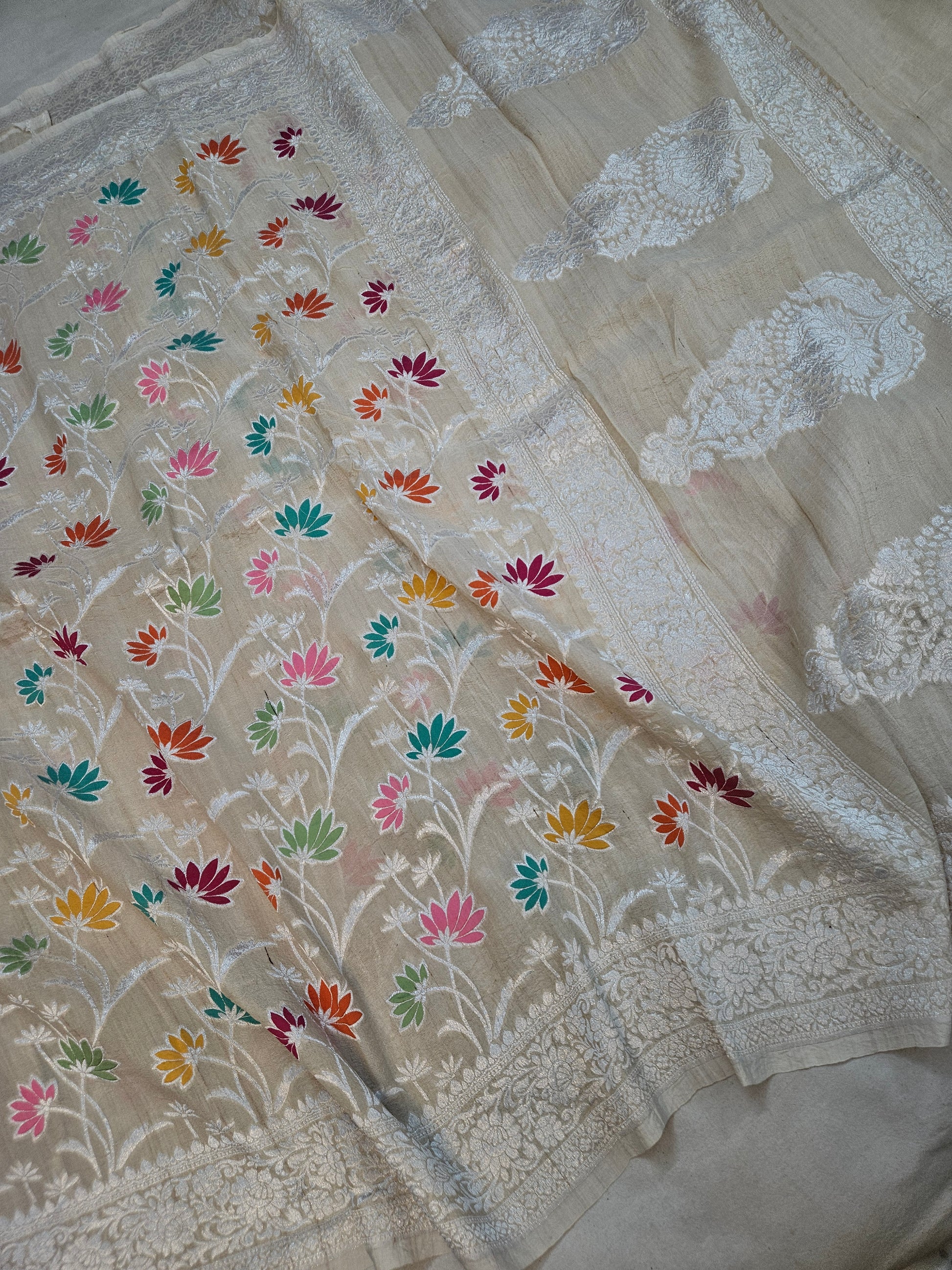 pure natural tussar silk banarasi meena woven saree
