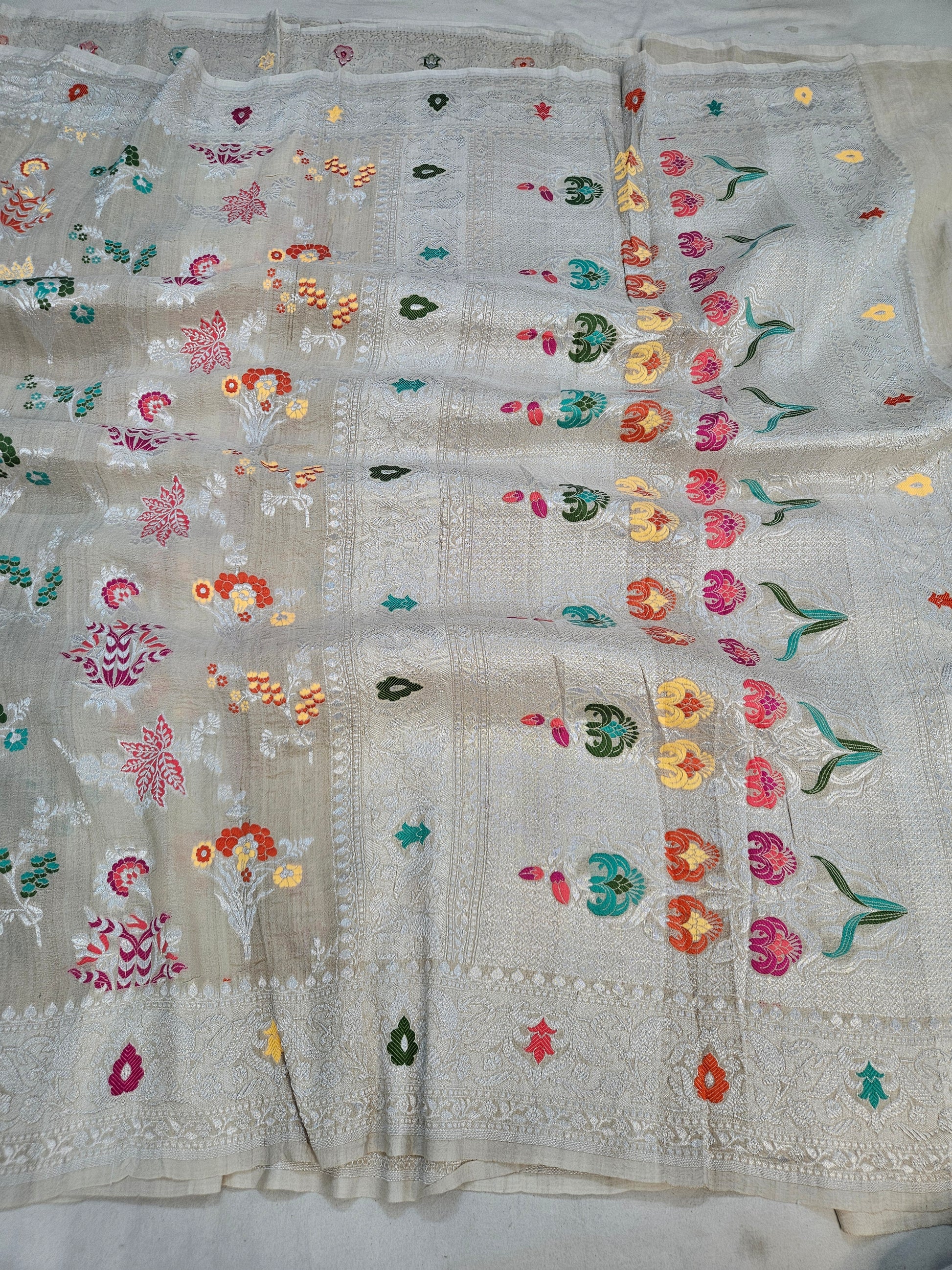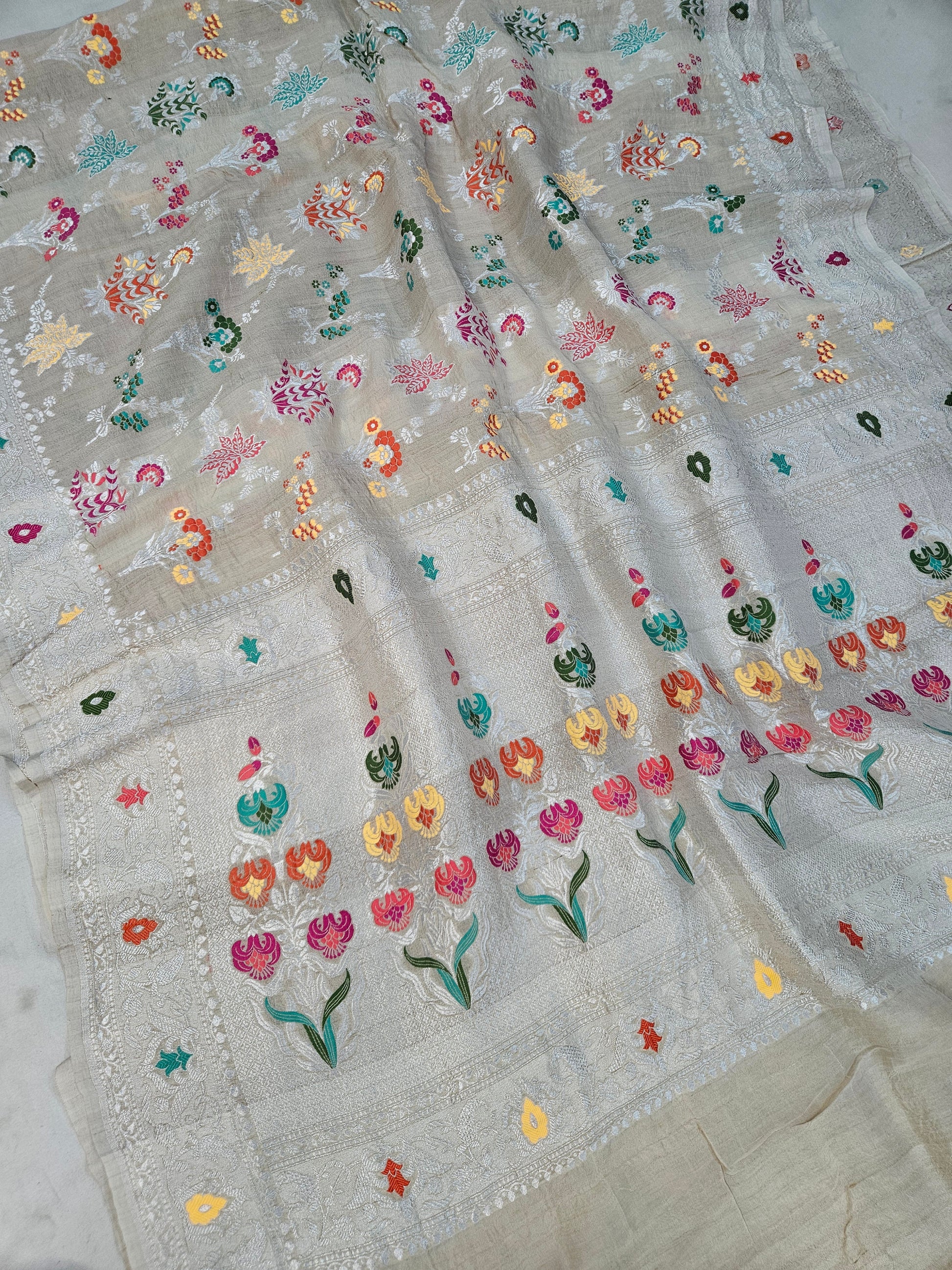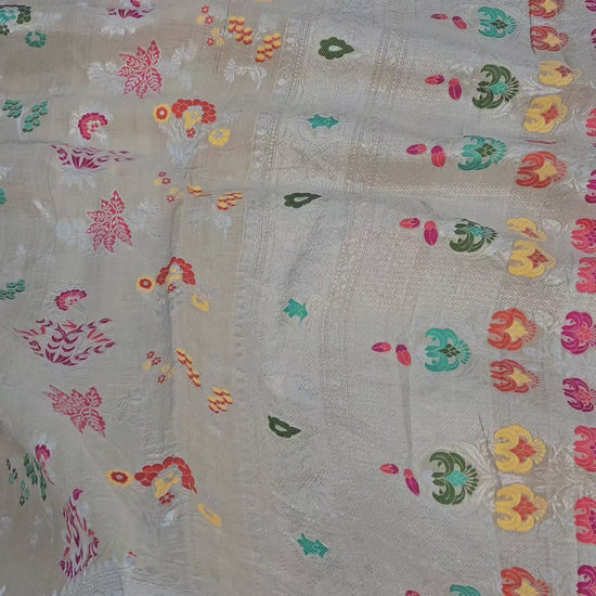 pure tussar silk banarasi meena woven saree in Tussar natural