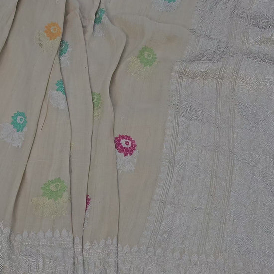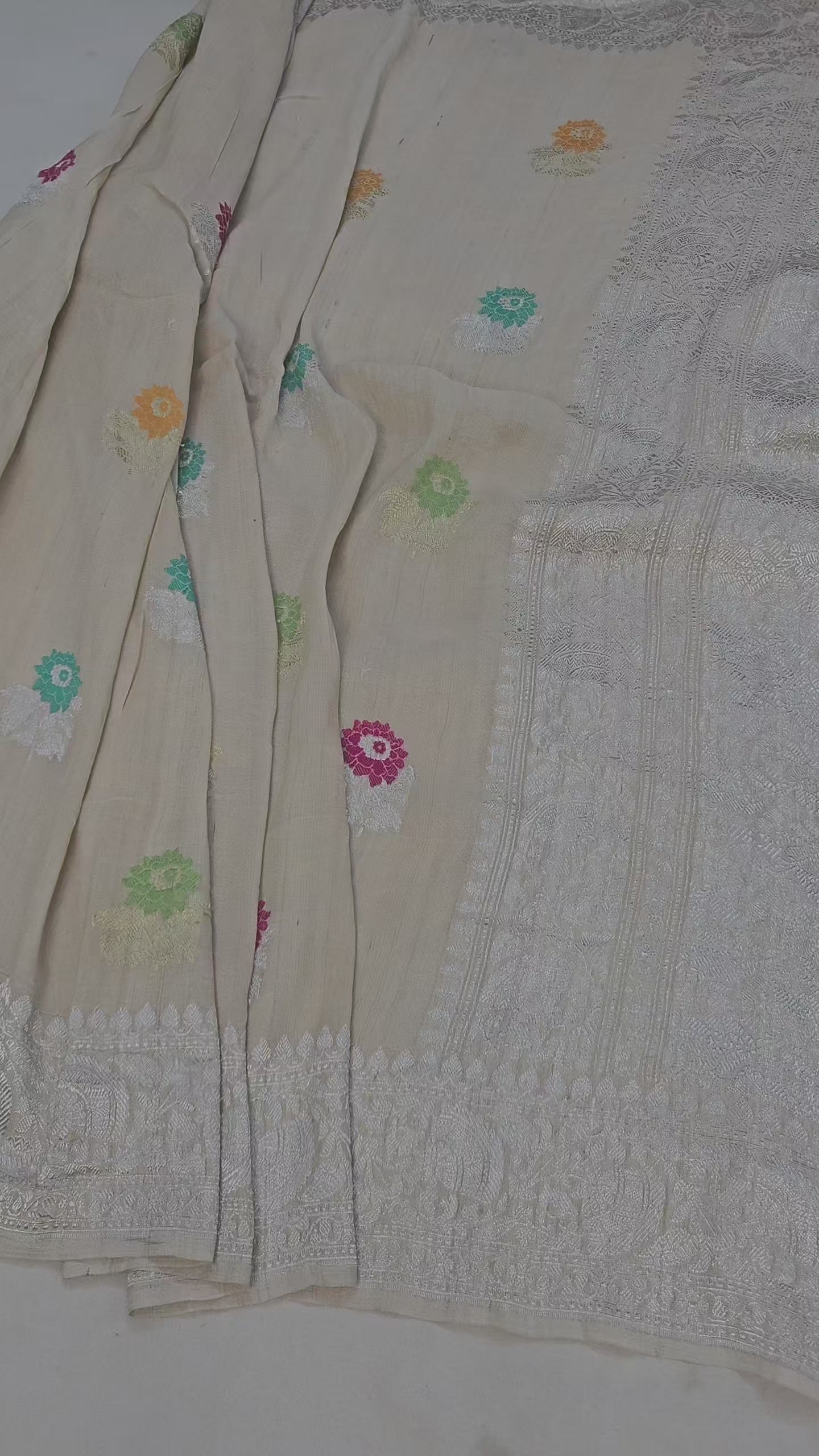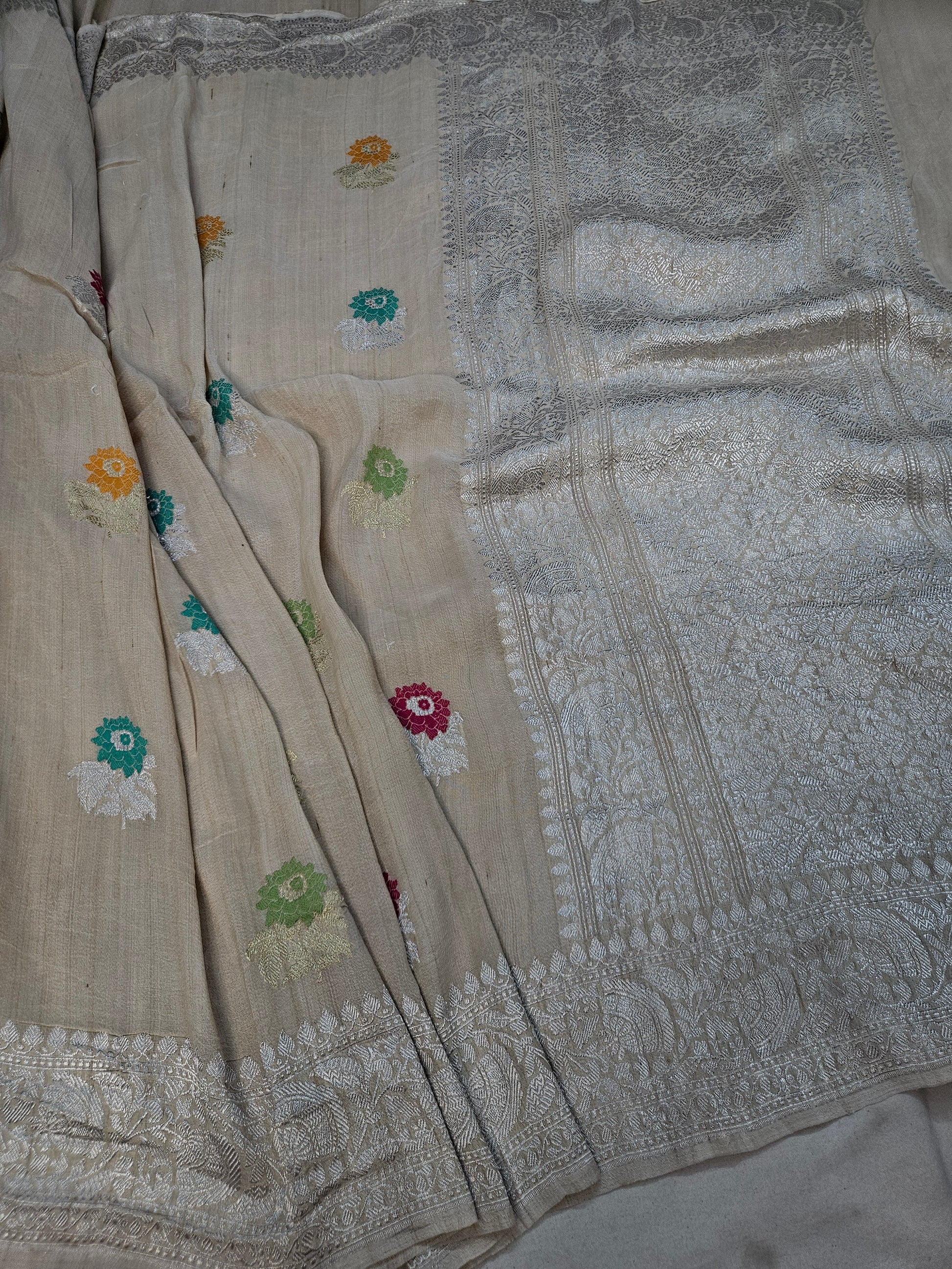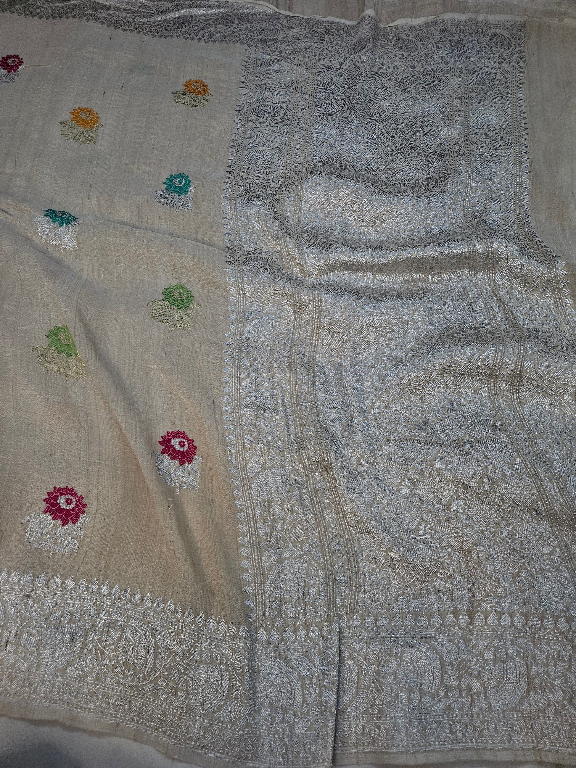 pure tussar silk handloom banarasi meena woven saree in Natural tussar