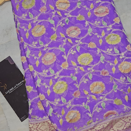 Pure Georgette Meena Hand Brush Work Banarasi Saree in Purple