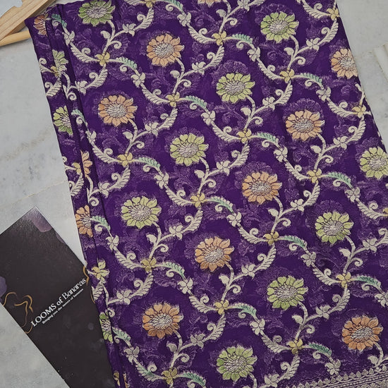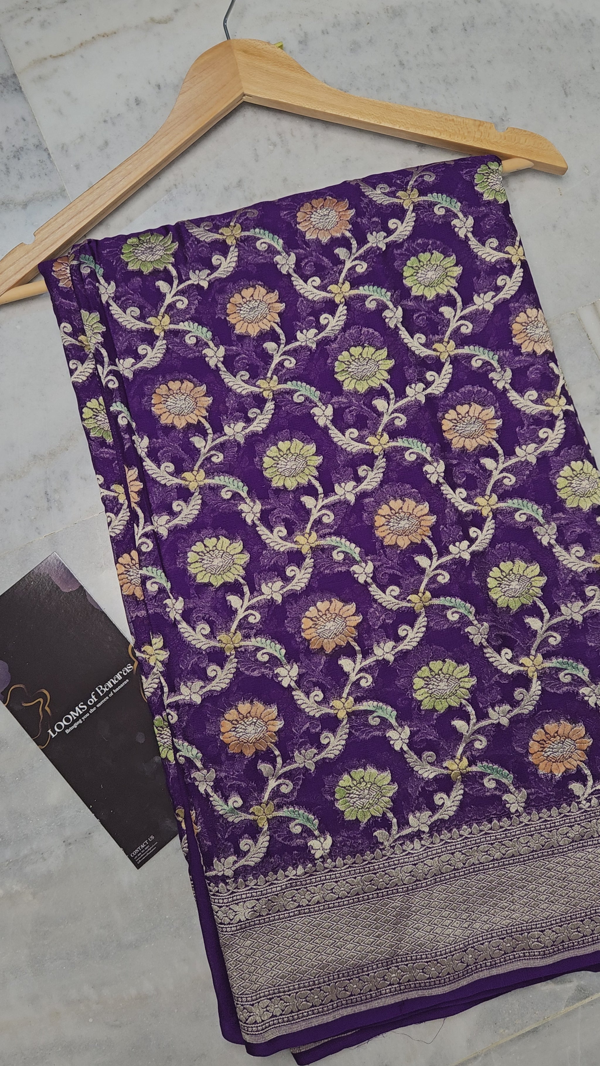 Pure Georgette Meena Hand Brush Work Banarasi Saree in Royal Purple