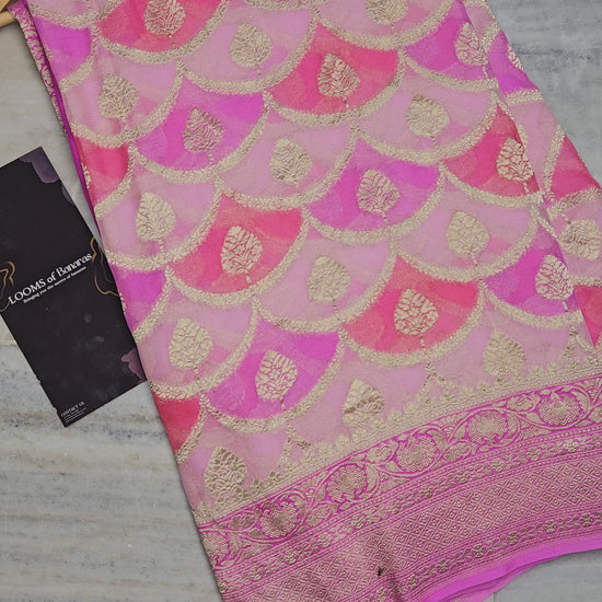 Pure Georgette Rangkat Syle Hand Brush Work Banarasi Saree in pink