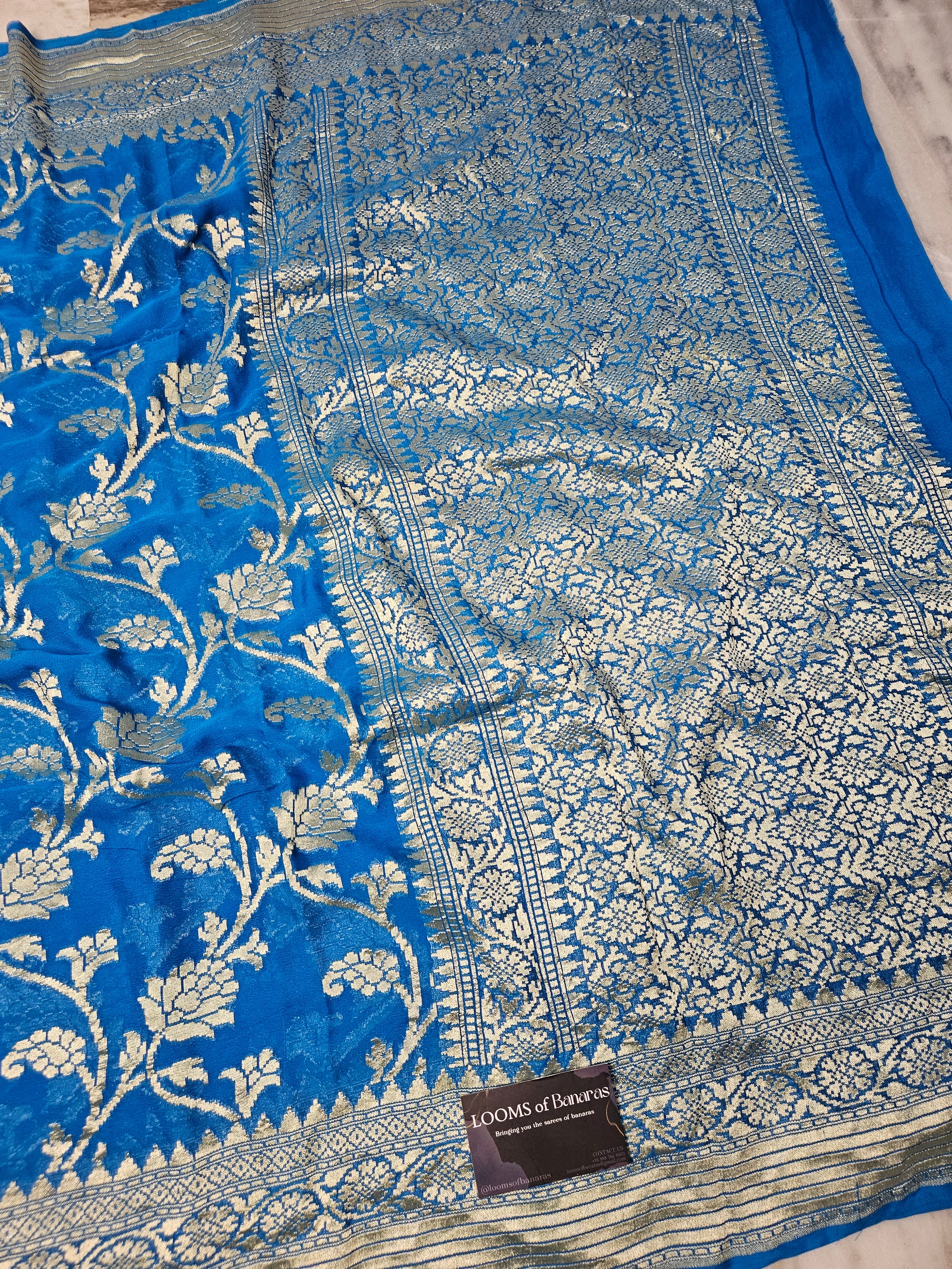 pure georgette silk woven tested zari banarasi saree in Deep sky blue