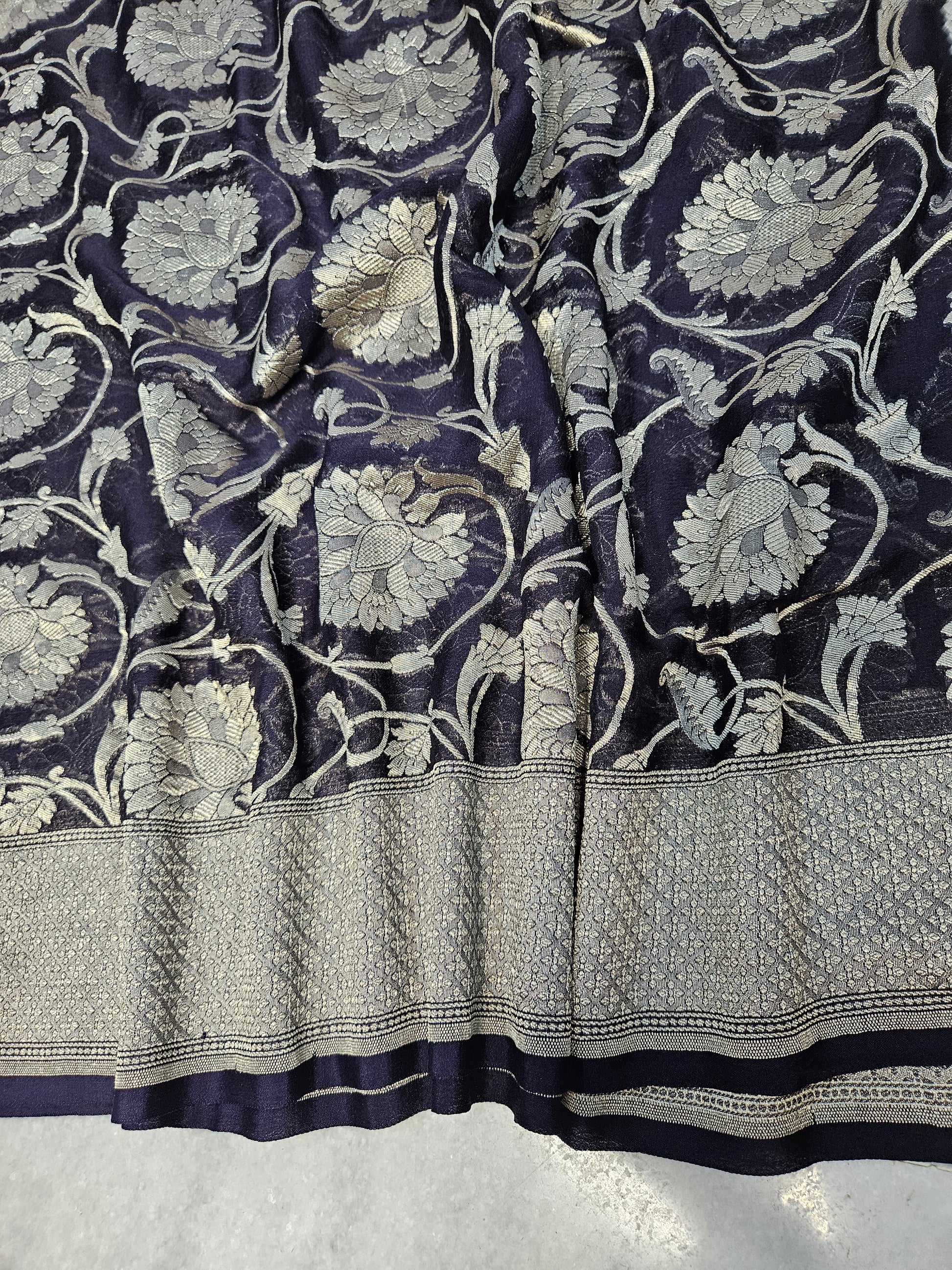 pure georgette silk woven tested zari banarasi saree in Jet black