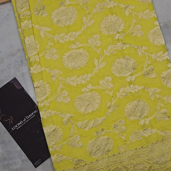Yellow Pure Georgette Banarasi Saree Jaal weaving faux watergold zari